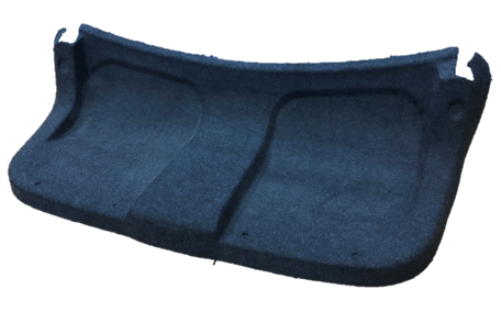 該產品裝配於車室後方行李箱蓋上,經烘烤熱壓成型後與車室完全密合,可有效阻隔行駛中風切的異音。